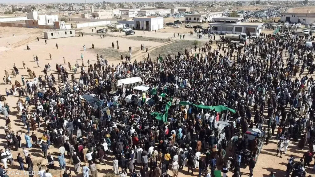 شيّع آلاف الليبيين، اليوم الجمعة، جثمان سيف الإسلام القذافي، نجل الزعيم الليبي الراحل معمر القذافي، إلى مثواه الأخير في مدينة بني وليد جنوب غربي طرابلس، وسط حضور واسع من القبائل والمكونات الاجتماعية، وفي مقدمتها قبائل الورفلة، ورفلة، والقذاذفة.