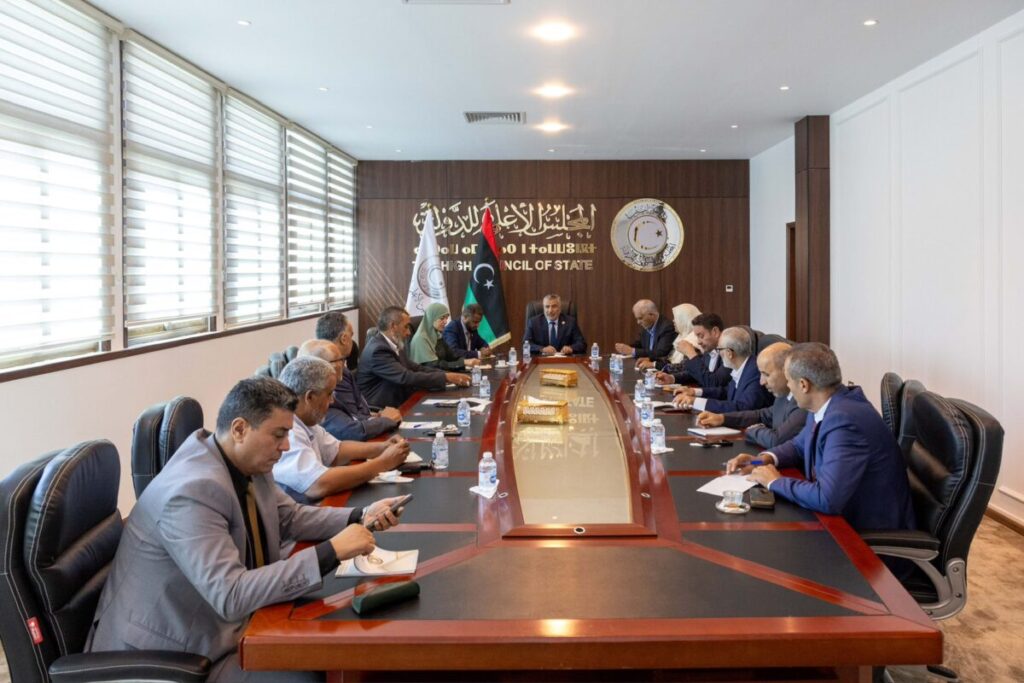 عقد رئيس المجلس الأعلى للدولة، محمد تكالة، اجتماعاً مع لجنة المناصب السيادية بالمجلس، وذلك بحضور النائب الأول لرئيس المجلس، حسن حبيب، والنائب الثاني، موسى فرج.