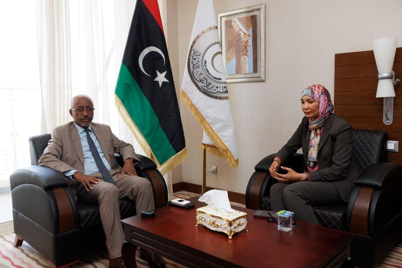 التقى النائب الأول لرئيس المجلس الأعلى للدولة الدكتور “مسعود عبيد”، اليوم الإثنين، نائبة رئيس الاتحاد النسائي الليبي ” النانه يوسف”، بمقر المجلس في العاصمة طرابلس.
