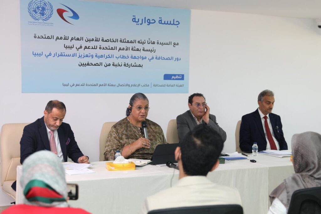 حذّرت الممثلة الخاصة للأمين العام للأمم المتحدة في ليبيا، هانا تيته، من تصاعد المعلومات الزائفة والخطاب التحريضي، معتبرة أنهما يعمّقان الانقسامات في البلاد، ودعت الصحفيين الليبيين إلى الاضطلاع بدور فاعل في التصدي لهذه الظواهر.