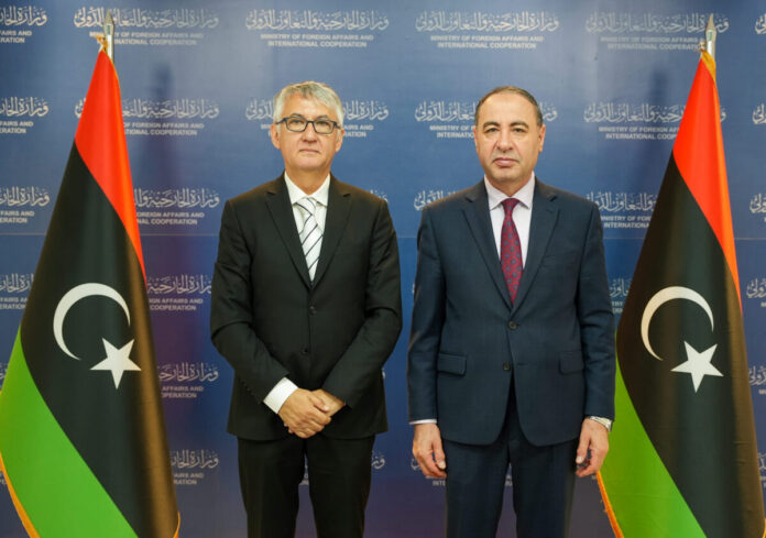 استقبل وزير الخارجية بالإنابة بحكومة الوحدة الوطنية الطاهر الباعور، الاثنين، بديوان الوزارة في طرابلس، سفير صربيا الجديد لدى ليبيا دارقان تودوروفيك.