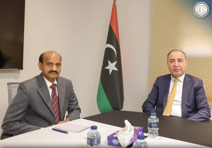 وركز اللقاء على بحث سبل تعزيز التعاون الثنائي بين البلدين في مختلف المجالات، بما يشمل العلاقات الاقتصادية والدبلوماسية والثقافية، في إطار تعزيز الشراكة الاستراتيجية بين ليبيا والهند.