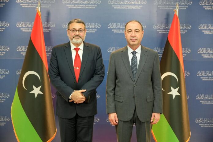 وتناول اللقاء “العلاقات الثنائية التاريخية بين ليبيا وبنغلاديش، وسبل تعزيزها في شتى المجالات، لا سيما تنظيم ملف العمالة الوافدة والتعاون في مكافحة الهجرة غير الشرعية”.