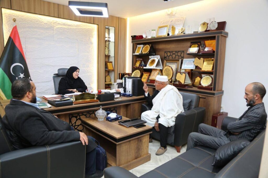 عقدت وكيل وزارة التربية والتعليم للشؤون التربوية الدكتورة مسعودة الأسود اجتماعًا مع مراقب التربية والتعليم ببلدية بني وليد الدكتور علي أبو قنيدة، ومراقب التربية والتعليم ببلدية تنيناي الأستاذ سعيد الباقول، بحضور مدير مكتب الشؤون القانونية بالوزارة الأستاذ عبد الرؤوف الشوشان.