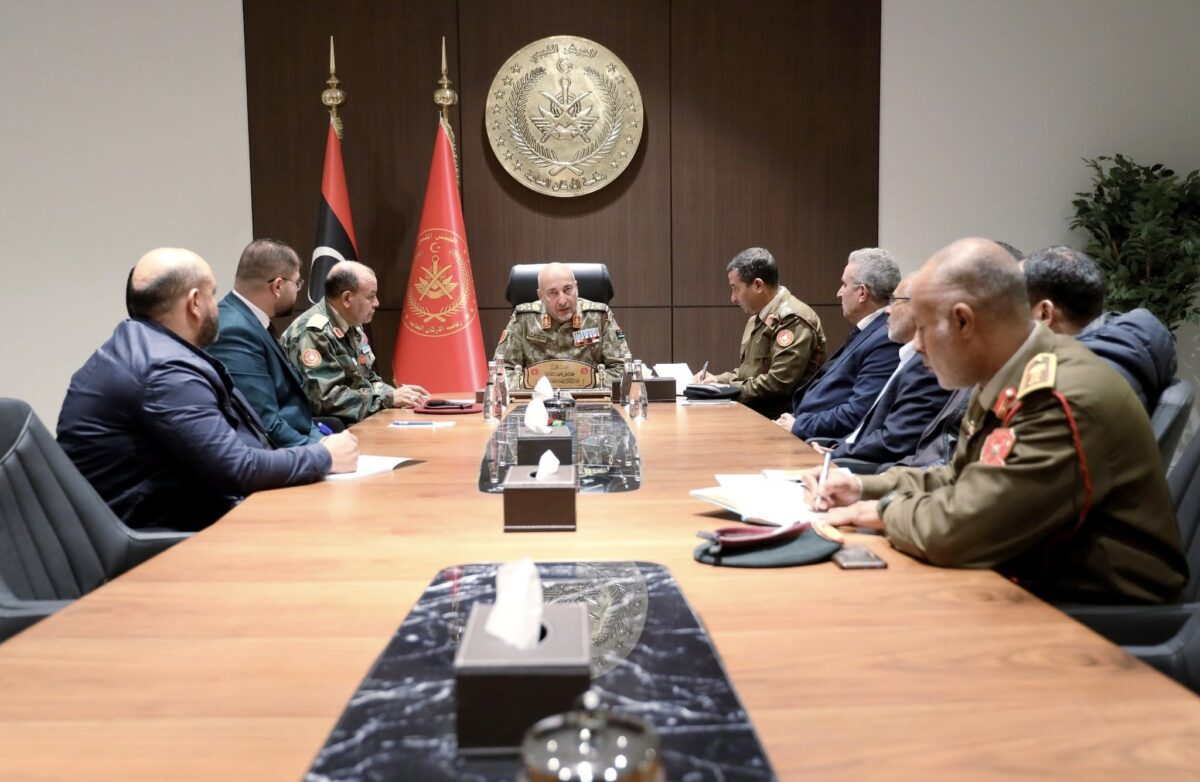 التقى رئيس الأركان العامة للجيش الليبي، الفريق أول ركن محمد الحداد، صباح الأحد مع رئيس وأعضاء لجنة تنظيم مسابقة البنيان الدولية والمحلية لحفظ القرآن الكريم للعسكريين في نسختها الثانية.