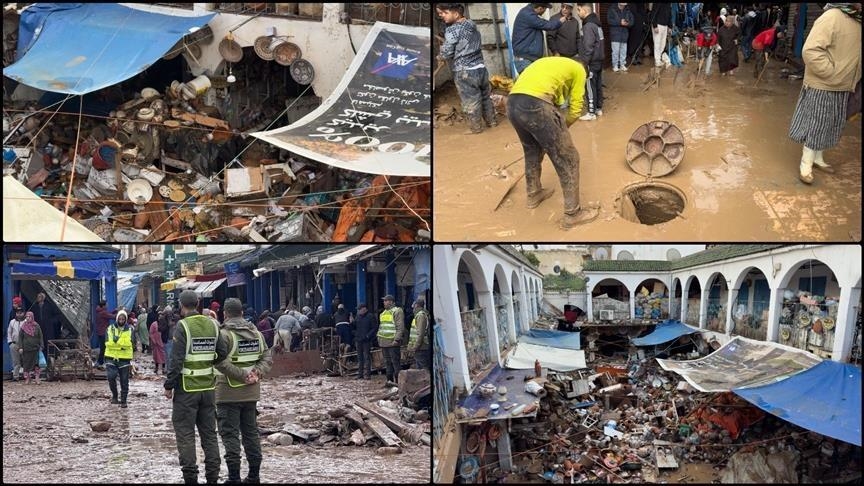 وأشار البيان إلى أن السلطات المغربية، بدعم من الجيش، أنشأت مخيمات طارئة لإيواء نحو 188 ألف شخص تم إجلاؤهم، بعد أن غمرت المياه أكثر من 110 آلاف هكتار من الأراضي الزراعية ومدينة القصر الكبير. كما تم استخدام طائرات هليكوبتر وقوارب للإنقاذ.