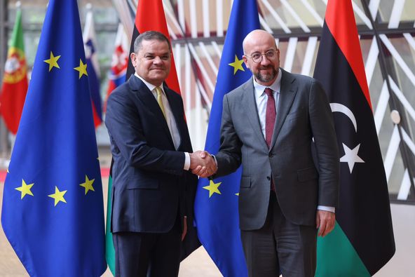 بحث رئيس حكومة الوحدة الوطنية عبد الحميد الدبيبة، مع رئيس المجلس الأوروبي شارل ميشيل، اليوم الأربعاء، عددا من القضايا السياسية والاقتصادية والأمنية.