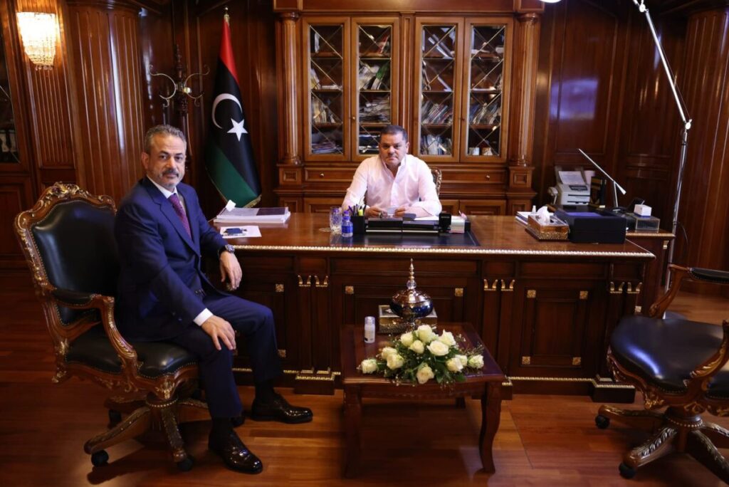 عقد رئيس حكومة الوحدة الوطنية عبد الحميد الدبيبة، اجتماعاً اليوم الاثنين، مع رئيس مجلس إدارة المؤسسة الوطنية للنفط فرحات بن قدارة، بديوان رئاسة الوزراء في طرابلس.