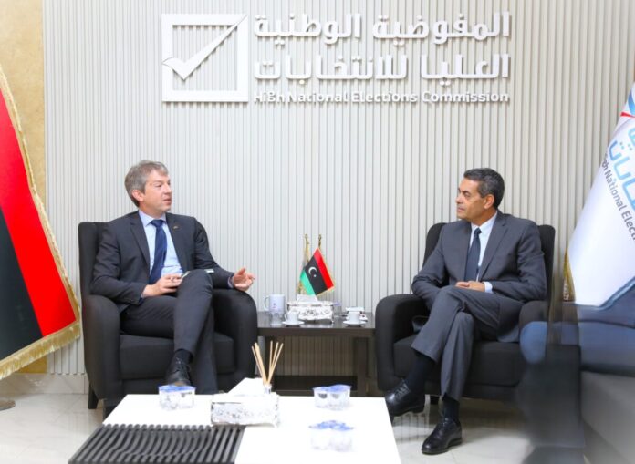 استقبل رئيس مجلس المفوضية الوطنية العليا للانتخابات، الدكتور عماد السايح، صباح اليوم الأربعاء، القائم بالأعمال بالسفارة الألمانية لدى ليبيا، دانيال شيمسكي، والوفد المرافق له، في مقر المفوضية بطرابلس.