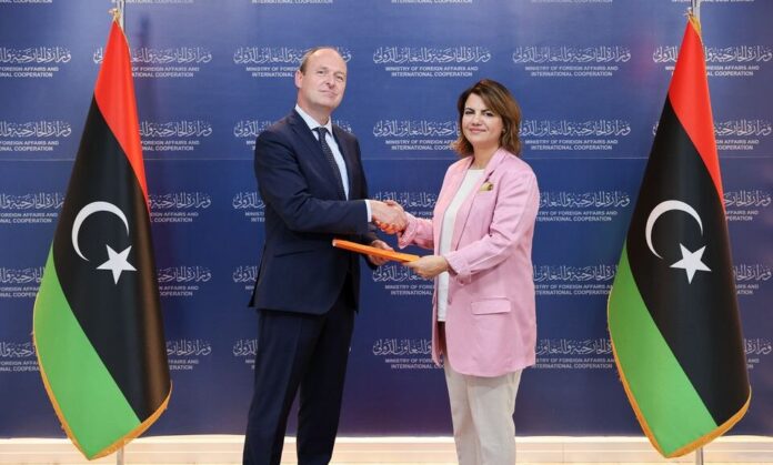 استقبلت وزيرة الخارجية والتعاون الدولي بحكومة الوحدة الوطنية نجلاء المنقوش، اليوم الأحد، بمكتبها في طرابلس، السفير الهولندي الجديد لدى ليبيا جوست كلارينبيك.