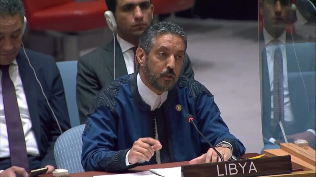 وجاء ذلك في كلمة ألقاها أمام مجلس الأمن خلال جلسته المخصصة للنظر في بند الحالة في ليبيا، حيث أشار إلى مرور خمسة عشر عامًا على ثورة 17 فبراير وعلى إخضاع ليبيا للفصل السابع وفرض العقوبات تحت شعار حماية المدنيين.