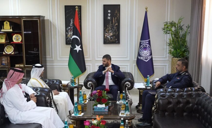 استقبل وزير الداخلية بحكومة الوحدة الوطنية، لواء عماد مصطفى الطرابلسي، اليوم الأربعاء في ديوان الوزارة، سفير دولة قطر لدى ليبيا، السيد خالد الدوسري، بحضور مدير مكتب الوزير، لواء عبدالواحد عبدالصمد.