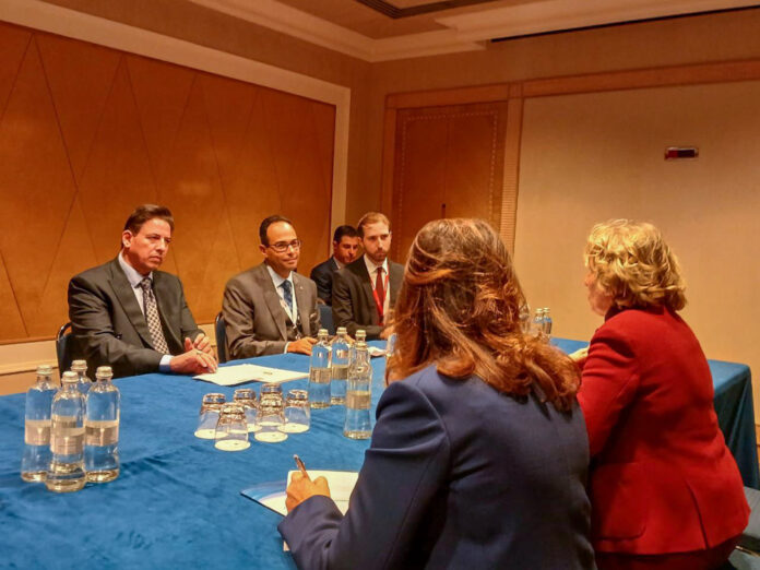 عقد رئيس لجنة الشؤون الخارجية والتعاون الدولي بمجلس النواب يوسف العقوري، اجتماعاً مع رئيس لجنة الخارجية في مجلس الشيوخ الإيطالي ستيفاني كراكسي.