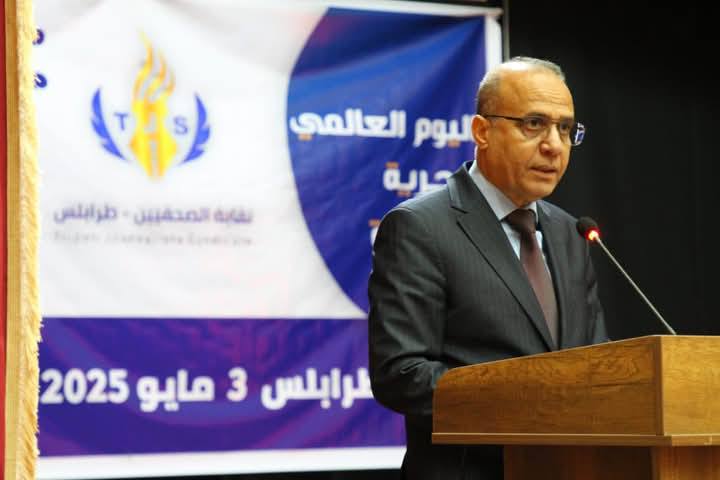 واختتم اللافي كلمته بتوجيه تحية تقدير إلى الصحفيين، مؤكدًا أن دعم حرية الصحافة يظل أولوية وطنية: “لن نرضى بثقوب في جدار الحرية، بل نعمل معًا على فتح الأبواب على مصراعيها، لن نقبل أن تكون الصحافة في ليبيا مجرد ممارسة محدودة بشغف مكبوت؛ بل نريدها سلطة رابعة حقيقية، تمارس دورها بلا خوف ولا مساومة، وتكتب مستقبل هذا الوطن بأحرف من نور وإخلاص”.