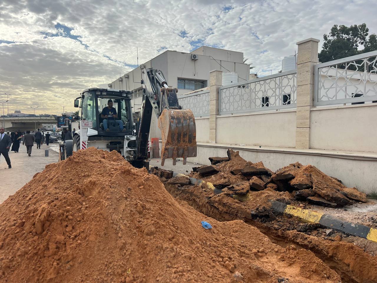 أعمال بمنطقة جزيرة باب العزيزية باتجاه طريق المطار.