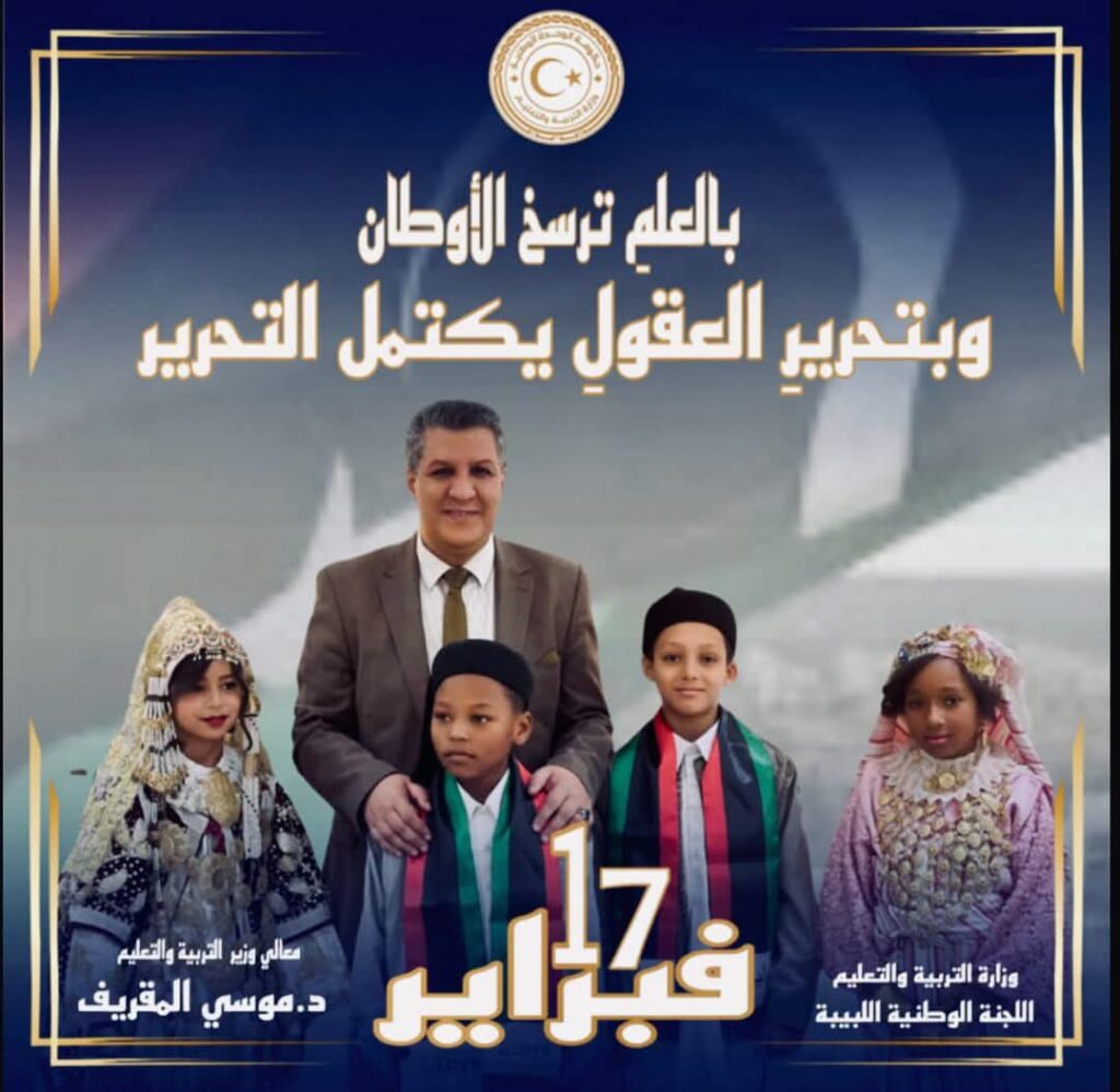 قدم وزير التّربية والتّعليم  ورئيس اللجنة الوطنية الليبية للتربية والثقافة والعلوم، موسى المقريف، تهنئة بمناسبة الذّكرى الرّابعة عشرة لِثورةِ السابع عشر من فبراير.