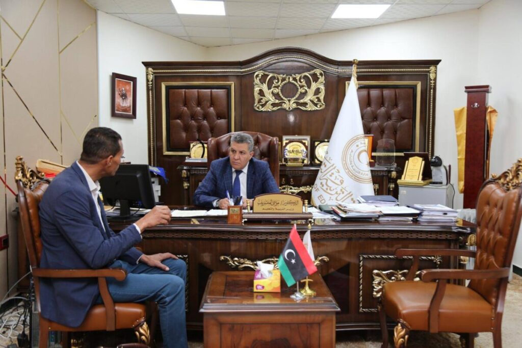 التقى وزير التّربية والتّعليم بحكومة الوحدة الوطنية الدّكتور “موسى المقريف”، مراقب التّربية والتّعليم ببلدية البوانيس الأستاذ “مصطفى بشير اقدورة”.