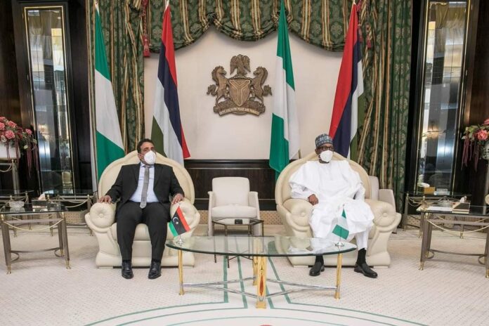 استقبل رئيس نيجيريا محمد بخاري، رفقة وزير الشؤون الخارجية النيجيري جيفري أونياما، وعدد من الوزراء، أمس الأربعاء، رئيس المجلس الرئاسي محمد المنفي، بالقصر الرئاسي في العاصمة أبوجا.
