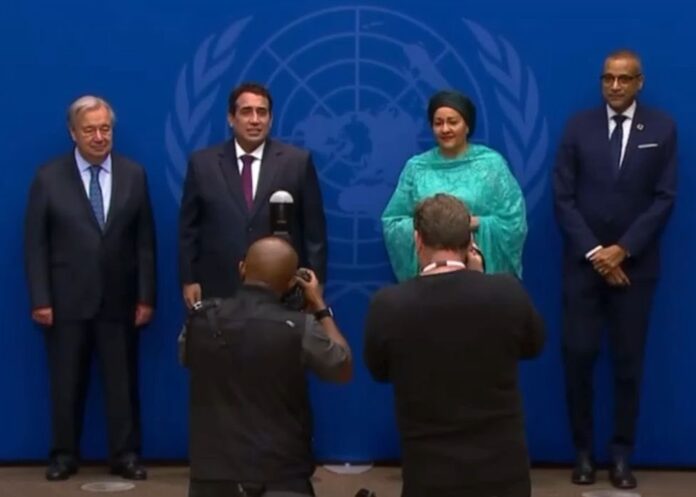 وصل رئيس المجلس الرئاسي، محمد المنفي، إلى مقر الجمعية العامة للأمم المتحدة في نيويورك، في إطار مشاركته في أعمال الدورة الـ80 للجمعية العامة للأمم المتحدة. وكان في استقباله الأمين العام، أنطونيو غوتيريش، ونائبته، أمينة محمد.