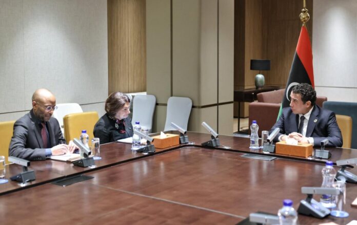 وتناول اللقاء مجموعة من الملفات السياسية والاقتصادية والأمنية، حيث استعرض الجانبان آخر المستجدات في ليبيا، وسبل تعزيز التنسيق مع الأمانة العامة للأمم المتحدة لدعم المسار السياسي، بما يسهم في ترسيخ الاستقرار ودعم دور بعثة الأمم المتحدة للدعم في ليبيا.