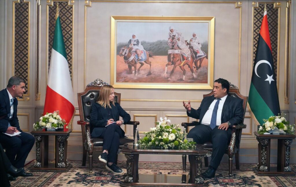 بدورها أكدت رئيسة الوزراء الإيطالية، على ضرورة تعزيز التعاون بين البلدين وخاصة في مجالات التعليم والبحث العلمي والصحة والرياضة والاستثمار والإعمار، بالإضافة لملفي الهجرة غير الشرعية والجريمة المنظمة، مؤكدة حرص إيطاليا لدعم العملية السياسية في ليبيا والانخراط بشكل إيجابي لتحقيق رغبة الليبيين في الوصول للانتخابات.