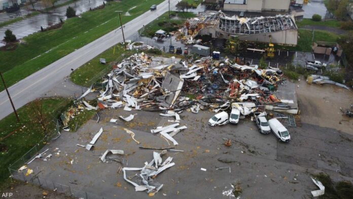 ووفق وكالة “فرانس برس”، “في جيفرسونتاون في كنتاكي، دُمّرت مبان عدة جرّاء إعصار  واقتلعت الأشجار وقطعت خطوط الكهرباء وانقلبت سيارات”.