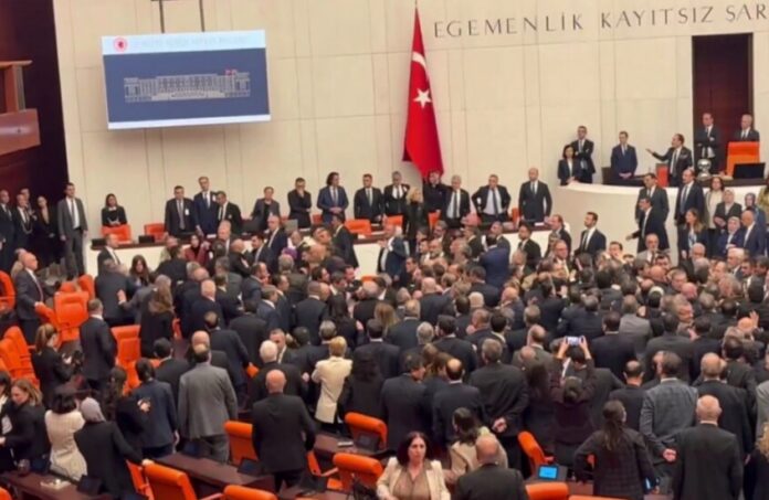 شهد البرلمان التركي، مساء الأحد، حالة من الفوضى غير المسبوقة خلال الاستعداد للتصويت على ميزانية عام 2026، بعد انتهاء مناقشات استمرت نحو شهرين، حيث اندلع شجار عنيف بين نواب حزب العدالة والتنمية ونواب حزب الشعب الجمهوري، تطور من تبادل للاتهامات الكلامية إلى اشتباك بالأيدي داخل قاعة المجلس.