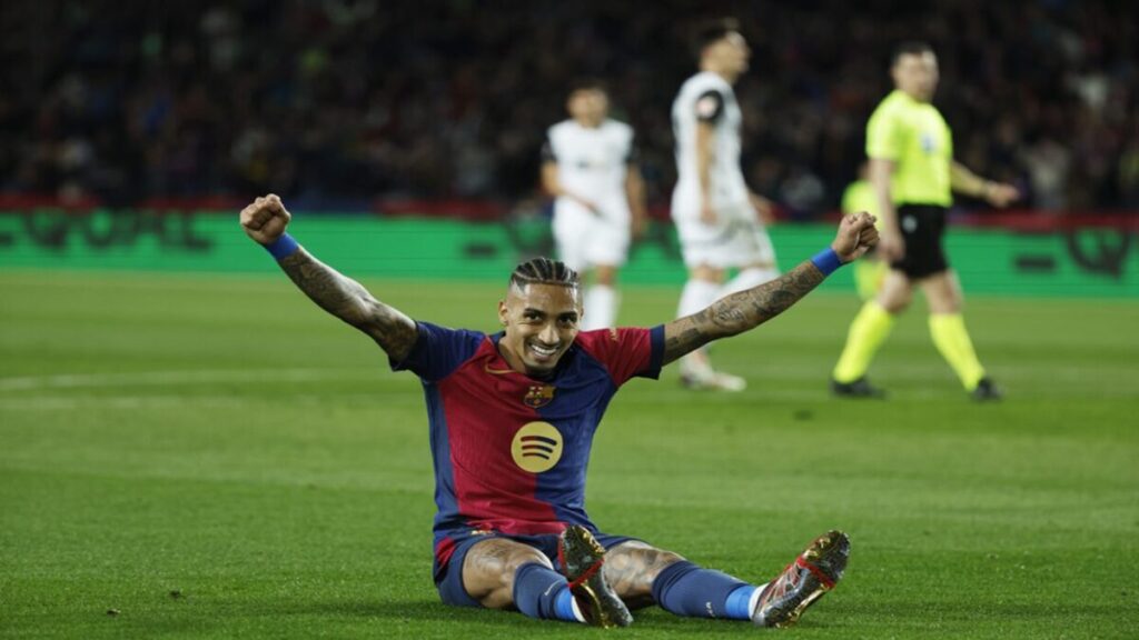 وبعد ذلك، سجل رافينيا الهدف الثالث في الدقيقة 14 بعد تمريرة بينية. وأحرز فيرمين لوبيز هدفين في الدقيقتين 24 و”45+4″.