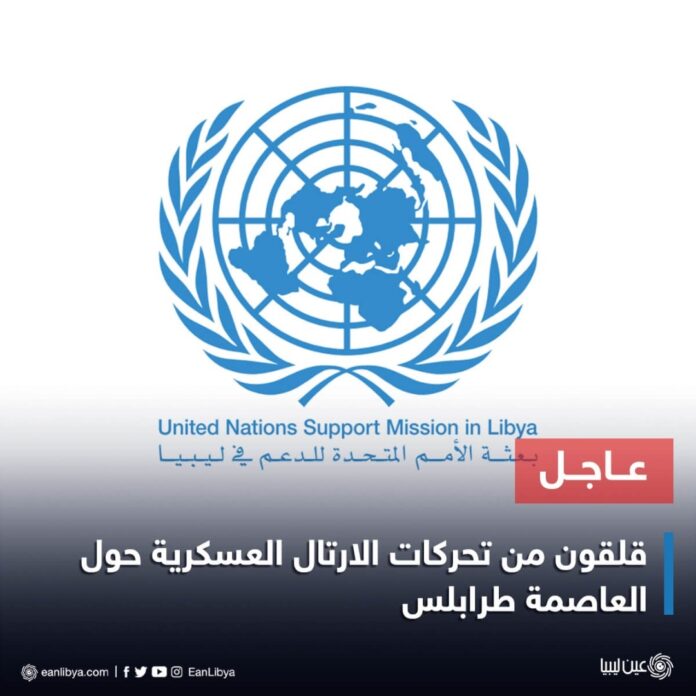 News بعثة الأمم للدعم في ليبيا: نتابع بقلق التقارير بشأن تحركات أرتال عسكرية كبيرة حول طرابلس ونؤكد أهمية الحفاظ على الهدوء والاستقرار في البلاد. By - March 10, 2022 0 492 FacebookTwitterPinterestWhatsApp The post بعثة الأمم للدعم في ليبيا: نتابع بقلق التقارير بشأن تحركات أرتال عسكرية كبيرة حول طرابلس ونؤكد أهمية الحفاظ على الهدوء والاستقرار في البلاد. appeared first on عين ليبيا | آخر أخبار ليبيا.