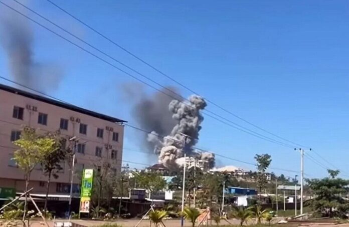 شنت القوات الجوية التايلاندية اليوم ضربة جوية استهدفت كازينو في محافظة بورسات الكمبودية، في خطوة وصفها الجيش التايلاندي بأنها استجابة لتحركات مشبوهة لعناصر الجيش الكمبودي، واستخدام المجمع لأغراض عسكرية، وفق ما أعلنه سلاح الجو الملكي التايلاندي.