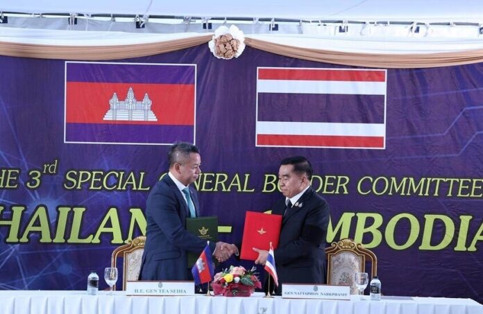 وأوضح بيان وزارة الدفاع الكمبودية أن وزير الدفاع التايلاندي ناثافون ناكفانيت ورئيس وزارة الدفاع الكمبودية تيا سيها وقّعا على الاتفاق الذي يبدأ سريانه اعتبارًا من 27 ديسمبر، مؤكدين الالتزام بالإبقاء على الانتشار الحالي للقوات دون أي تحركات إضافية لتجنب أي تصعيد جديد.