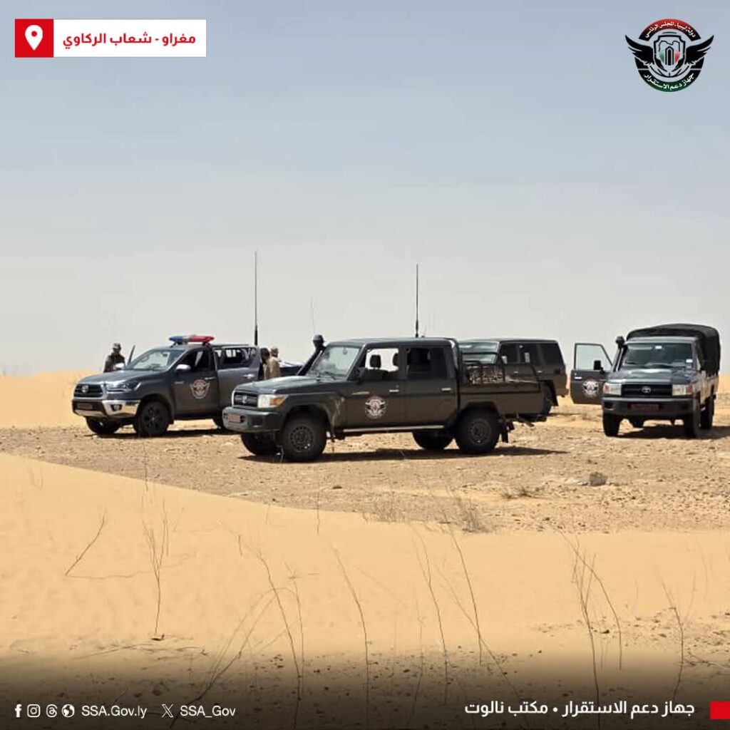 نفّذ جهاز دعم الاستقرار، ضمن استراتيجيته الأمنية الهادفة إلى تأمين الحدود الليبية، دوريات أمنية سيرها مكتب نالوت على امتداد الحدود الليبية التونسية، انطلاقًا من نقطة “مغراو” مرورًا بنقطة “شعاب الركاوي”