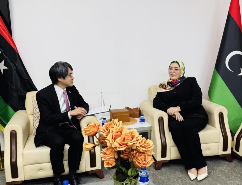 وجرى خلال اللقاء “مناقشة آفاق التعاون المشترك بين ليبيا واليابان في مجال تمكين المرأة، والتأكيد على أهمية تعزيز الشراكة في مجالات التدريب وبناء القدرات للنساء الليبيات”.