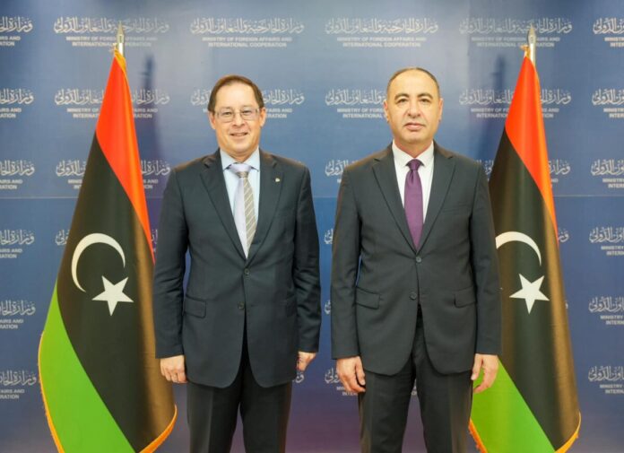 وتناول اللقاء “بحث سبل تعزيز علاقات التعاون بين البلدين في مختلف المجالات، إضافة إلى مناقشة عدد من القضايا الإقليمية والدولية ذات الاهتمام المشترك، وعلى رأسها الجهود الرامية إلى تحقيق الاستقرار في ليبيا ودعم العملية السياسية”.