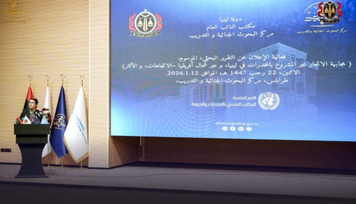 وكشف التقرير عن تصاعد التهديدات المرتبطة بالجريمة المنظمة العابرة للحدود، والجريمة الجغرافية، وتطور ما وصفه بالنظام البيئي الإجرامي، مشيرًا إلى أن ليبيا باتت دولة عبور متضررة من تدفقات المواد المخدرة، سواء عبر الاستيراد غير المشروع أو التصدير غير القانوني، بما ينعكس مباشرة على الأمن، والصحة العامة، والاستقرار الاجتماعي، والاقتصاد الوطني، ومسارات التنمية.