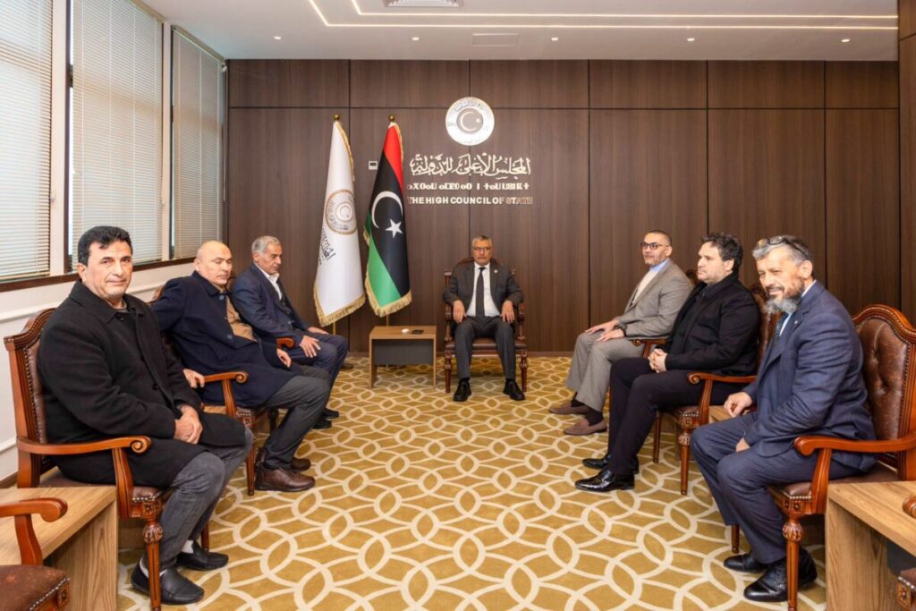 استقبل رئيس المجلس الأعلى للدولة الدكتور محمد تكالة، اليوم الأربعاء الموافق 1 أبريل، رئيس جهاز الأمن القومي الليبي العميد سعيد بن سعيد ونائبه بهاء الدين مصطفى مادي، رفقة الوفد المرافق، في مقر المجلس بالعاصمة طرابلس.