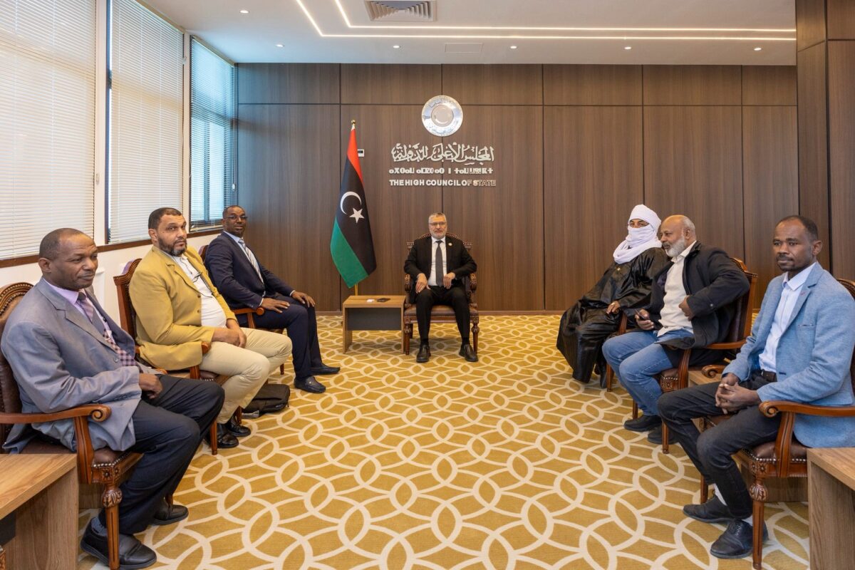 استقبل رئيس المجلس الأعلى للدولة، الدكتور محمد تكالة، اليوم الأربعاء 26 نوفمبر 2025، وفدًا من حراك فزان المقيمين في طرابلس وضواحيها، وذلك بمقر المجلس في العاصمة.
