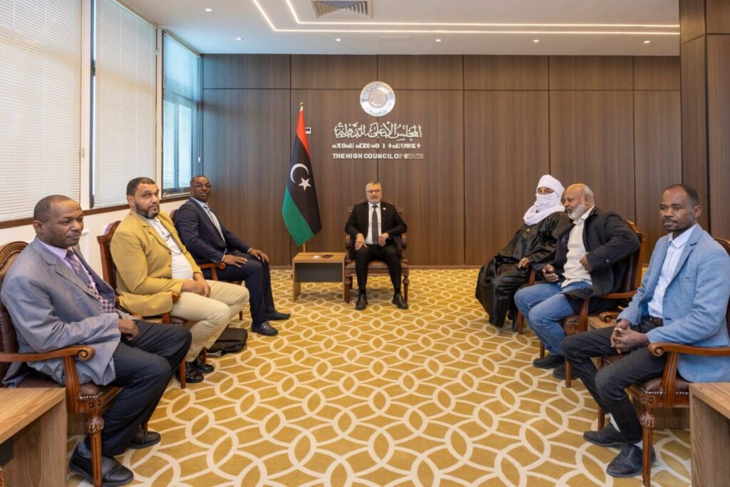 استقبل رئيس المجلس الأعلى للدولة، الدكتور محمد تكالة، اليوم الأربعاء 26 نوفمبر 2025، وفدًا من حراك فزان المقيمين في طرابلس وضواحيها، وذلك بمقر المجلس في العاصمة.
