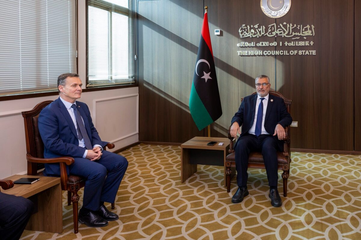 استقبل رئيس المجلس الأعلى للدولة، الدكتور محمد تكالة، اليوم الأربعاء 3 ديسمبر 2025، السفير الفرنسي الجديد لدى ليبيا، تييري فالا، بمقر المجلس في العاصمة طرابلس.