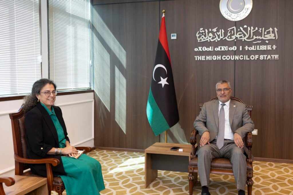 استقبل رئيس المجلس الأعلى للدولة، الدكتور محمد تكالة، اليوم الأربعاء 5 نوفمبر، نائبة رئيسة البعثة الأممية للشؤون السياسية في ليبيا، ستيفاني خوري، بمقر المجلس في طرابلس.