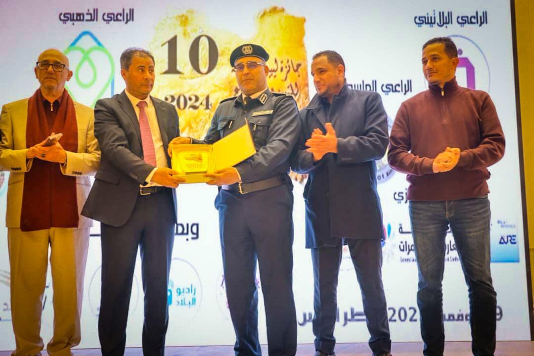 وتسلّم درع الجائزة رئيس مكتب العلاقات العامة بالمديرية، العميد موسى غنية، خلال الحفل الذي شهد حضور شخصيات رسمية وممثلين عن المؤسسات العامة والخاصة، إلى جانب نخبة من المبدعين الليبيين في مختلف المجالات.