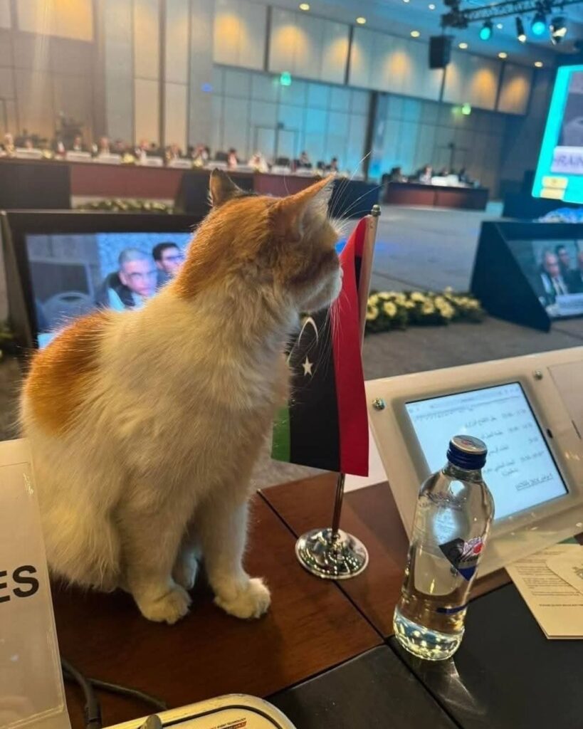 وأوضحت منصة “تبيان” أن الاجتماع يعود إلى عام 2024، وليس حديثًا كما تم الترويج له، مشيرة إلى أن القطة دخلت القاعة بشكل تلقائي وجلست أمام المقعد الليبي الشاغر في ذلك الوقت، ما أدى إلى التقاط الصورة التي تم تداولها خارج سياقها الحقيقي.