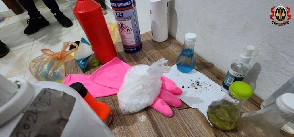 وبحسب بيان نشره مكتب النائب العام، “نظر وكيل النيابة، بنيابة مكافحة المخدرات والمؤثرات العقلية- طرابلس، إجراءات الاستدلال التي اتخذها مأمور مكتب مكافحة المخدرات وغسل الأموال، في مواجهة المشتبه بارتكابه فعل تحضير مادة ((ميثا فيتامين- الشابو)) المُسبّبة لأعراض نفسية حادة نتيجة تأثيرها على إدراك المتعاطي”.