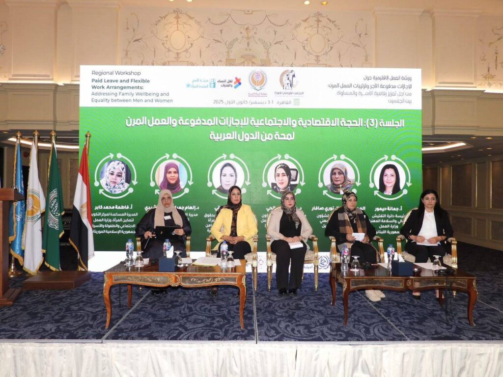 وأكدت الورشة في ختام أعمالها أهمية تبادل التجارب العربية، وتطوير الأطر التشريعية والسياسات الداعمة لبيئات عمل مرنة وعادلة، بما يعزز تحقيق التنمية المستدامة ويرفع مستوى مشاركة المرأة في الحياة الاقتصادية.