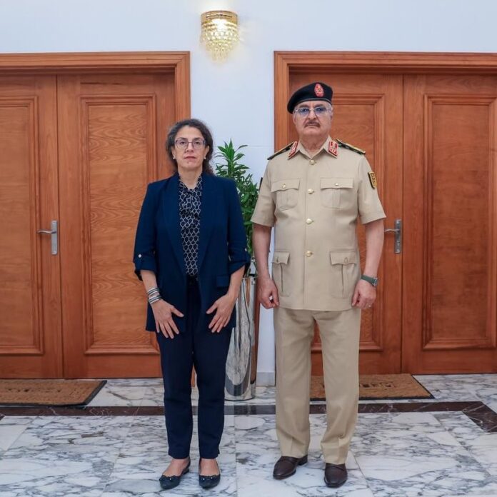 في إطار المشاورات المتواصلة، اجتمعت نائبة الممثل الخاص للأمين العام القائمة بأعمال رئيس بعثة الأمم المتحدة للدعم في ليبيا ستيفاني خوري، مع خليفة حفتر، في بنغازي.