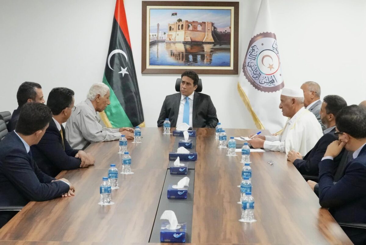 التقى رئيس المجلس الرئاسي محمد المنفي، اليوم الخميس، بمقر المجلس في طرابلس، عدداً من أعيان وحكماء ونخب برقة.