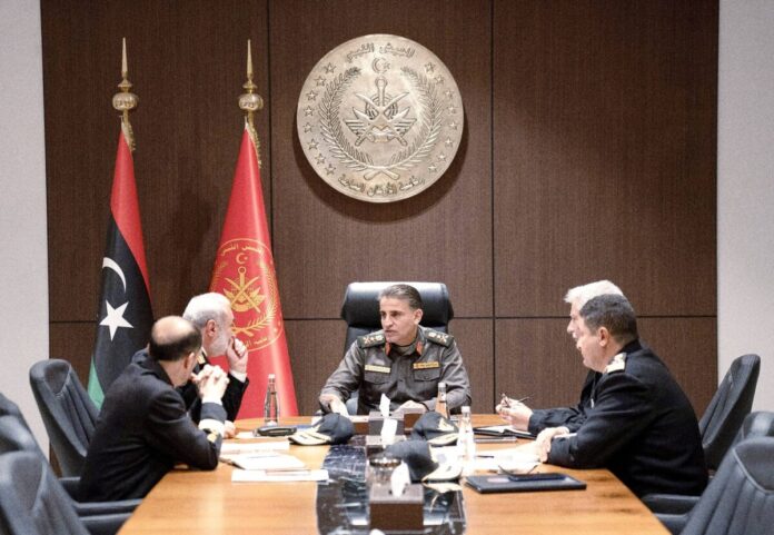 بحث رئيس الأركان العامة للجيش الليبي الفريق الدكتور صلاح الدين النمروش، سبل دعم وتطوير عمل القوات البحرية، خلال اجتماع عقده مع رئيس أركان القوات البحرية اللواء مهندس نورالدين البوني، بحضور عدد من الضباط المختصين.