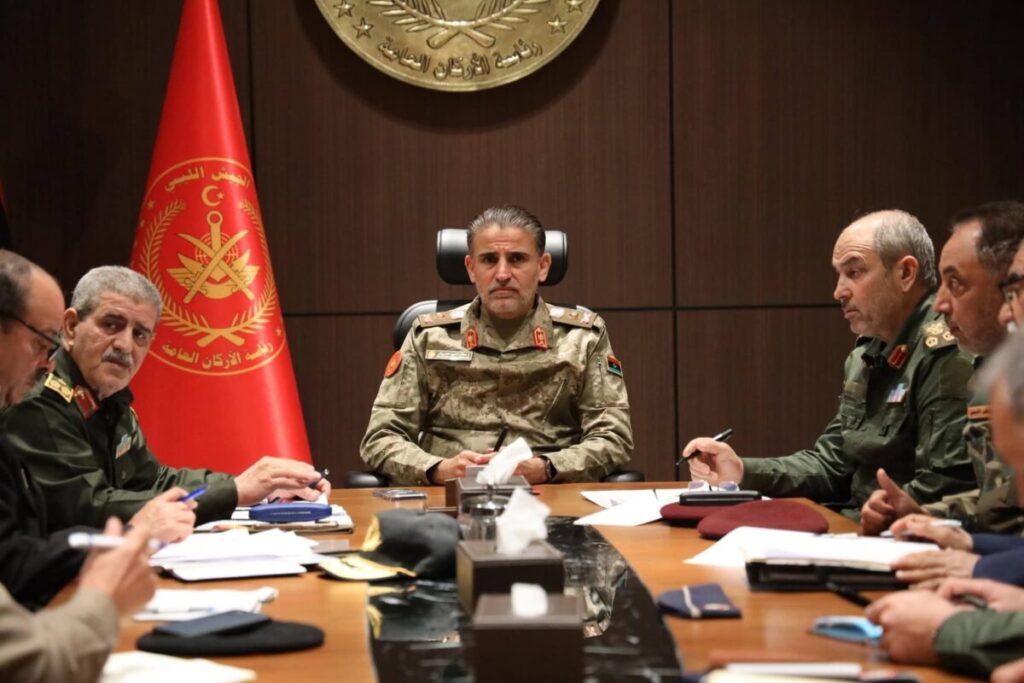 عقد رئيس الأركان العامة للجيش الليبي الفريق الدكتور صلاح الدين النمروش اجتماعًا موسعًا مع مدير إدارة التدريب العميد مصطفى راشد، بحضور أمراء شعب التدريب بالمناطق العسكرية والأركانات النوعية (البرية، البحرية، الجوية، والدفاع الجوي)، لمتابعة وتقييم حصيلة برامج التدريب الخارجي التي نفذت خلال العام 2025.