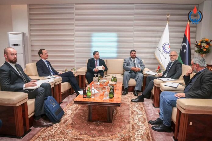 وجرى بين الطرفين لقاءاً موسعاً، تم خلاله “مناقشة أوجه التعاون المشترك بين المؤسسة والاتحاد الأوروبي، في مجال تعزيز آليات تطوير قطاع النفط الليبي، الذي تسعى إليه المؤسسة وفق خطط واستراتيجيات معتمدة”.
