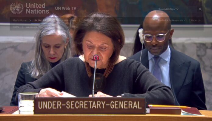 وقالت وكيلة الأمم العام للأمم المتحدة للشؤون السياسية روزماري ديكارلو: “نعمل مع جميع الأطراف الليبية لحثهم على عملية مصالحة، مشيرة إلى أن “أنشطة الجهات والمجموعات المسلحة تهدد الاستقرار الهش في ليبيا”.